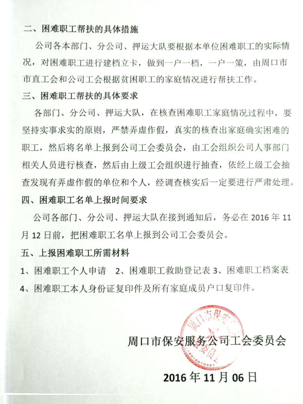 周口市保安服務(wù)公司工會會費繳納標(biāo)…
