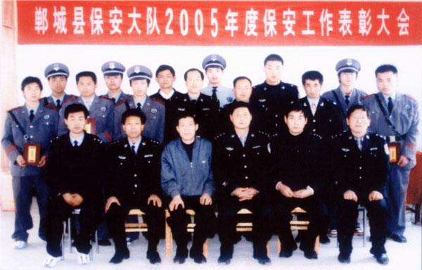 2006年度市公安局保安公司領(lǐng)導(dǎo)和鄲城縣公安局領(lǐng)導(dǎo)與受表彰的保安隊(duì)員合影留念…