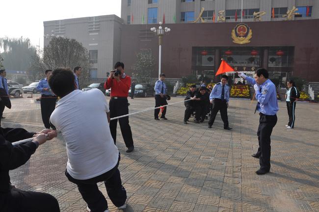 為了慶祝祖國母親60歲生日,10月1日上午,保安公司派出代表隊(duì)參加市局舉辦的拔河比賽。賽前,公司押運(yùn)經(jīng)理秦平柱對(duì)參賽隊(duì)員進(jìn)行了賽前動(dòng)員,要求大家要以良好的精神狀態(tài)和積極的心態(tài)參加此次比賽。